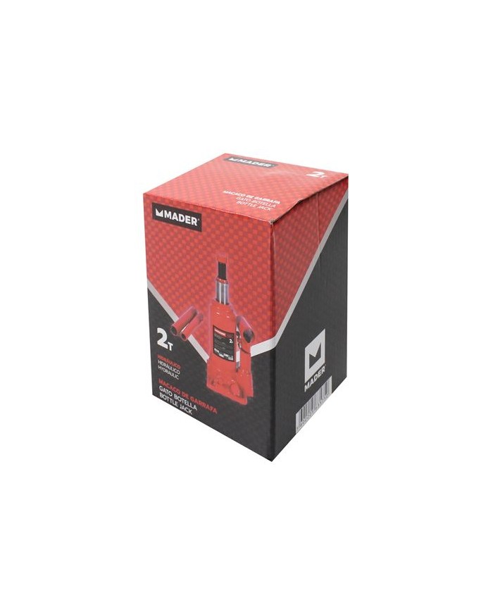 Gato botella, sistema hidrulico para elevacin hasta 2 toneladas. Altura de elevacin: 158-308 mm.Embalaje: Altura 16.00 cm Anchura 10.00 cm Longitud 10.00 cm Peso Bruto 2.20 kg Peso Neto 2.20 kg