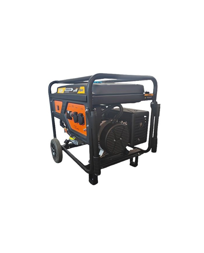 Potencia, fiabilidad y duracin para que nada se detenga. Ideal para entornos de alta demanda. Especificaciones: Tipo de motor: OHV, 4 tiempos, refrigerado por aire Cilindrada: 420 cc Potencia nominal: 6.0 kW Potencia mxima: 6.5 kW Voltaje: 230 V Frecuencia: 50 Hz Arranque: Manual Capacidad del tanque: 25 L Autonoma: Hasta 8 horas de funcionamiento continuo Ruedas y manillar: Incluidos Peso neto/bruto: 74 / 76.5 kg Dimensiones (L x An x Al): 700 x 540 x 580 mm Aplicaciones Ideales: Obras y maquinaria de construccin Viviendas grandes con consumo exigente Food trucks y eventos con mltiples electrodomsticos Talleres mviles y herramientas elctricas Fincas o uso