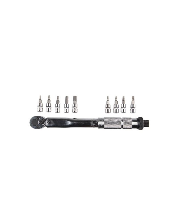* Llave dinamomtrica: 1un - 1/4" - 270mm * Llaves Vaso: 9un - 1/4" - H2.5, H3, H4, H5, H6, H8, H10, * T25, T30 * Torque Mximo: 2.26 - 22.6Nm * Precisin (Dentro): +/- 4%Embalaje: Altura 31.00 cm Anchura 6.50 cm Longitud 9.00 cm Peso Bruto 1.10 kg Peso Neto 1.00 kg