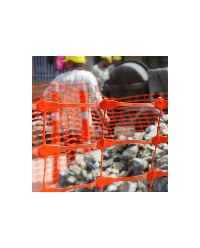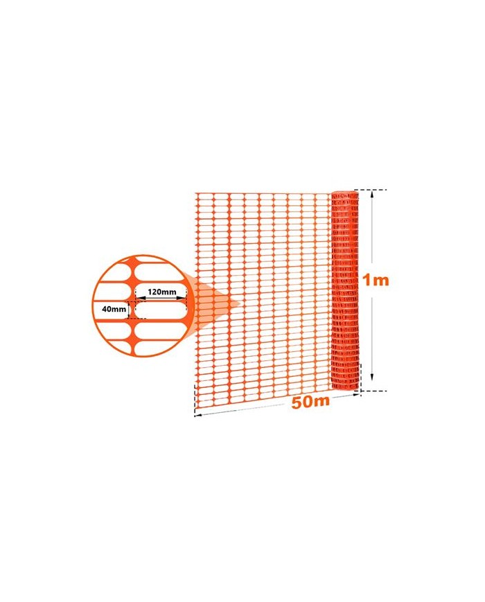 Malla de sealizacin, generalmente utilizada para delimitar reas de construccin, obras viales o zonas restringidas. Su color naranja y diseo con aberturas permiten que sea altamente visible y de peso ligero. Material: polietileno de alta densidad. Resistencia a la intemperie: soporta lluvia, viento y rayos UV sin degradarse rpidamente. Dimensiones rollo: 1 x 50 metros (alto x largo). Geometra: 120X40mm Peso: 80grs / m2 Se suministra en rollo.
