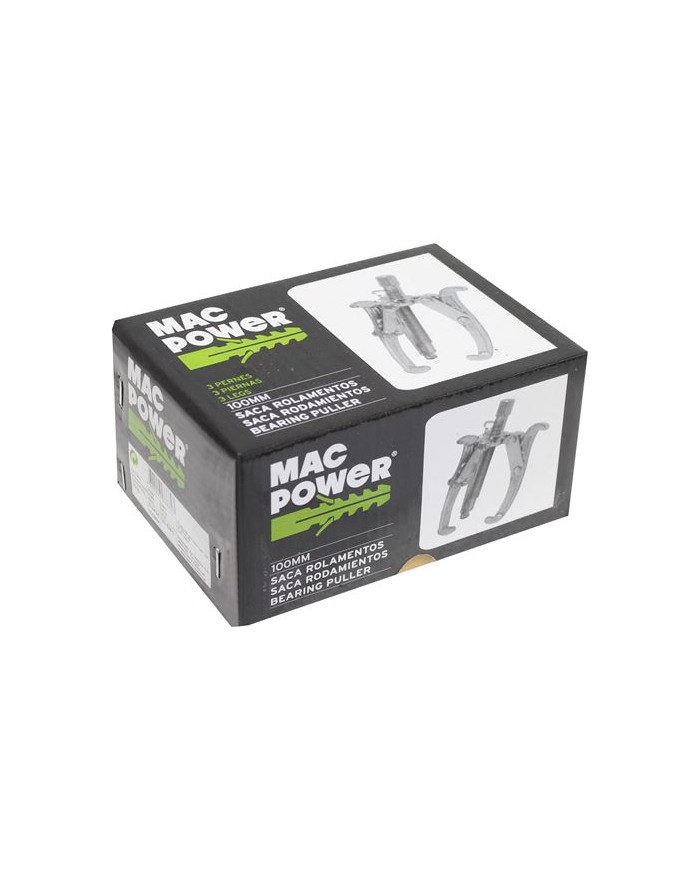 Saca rodamientos o extractores de 100mm. de poleas de 3 patas. Adecuado cojinetes, poleas, engranajes, ruedas y anillos. Cada brazo se puede ajustar por separado construccin brazos bilaterales permite la descarga de los Anillos interna y externa incrustado a diferentes profundidades Fabricados en acero forjado. Los extractores son reversibles para uso exterior e interior.Embalaje: Altura 8.50 cm Anchura 12.20 cm Longitud 9.30 cm Peso Bruto 0.51 kg Peso Neto 0.51 kg