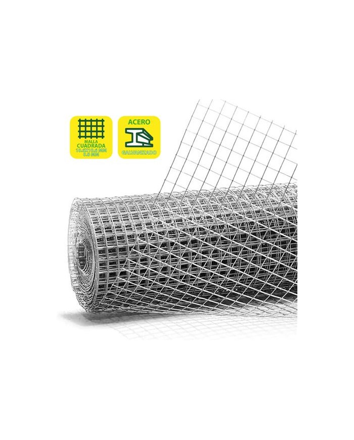 Material: acero galvanizado. til para la proteccin de cultivos, construccin de jaulas y recintos, refuerzos de concreto, industria de la construccin, control de erosin, filtrado y cribado, proyectos de bricolaje y reforzar reas de seguridad. Dimensiones rollo: 1 x 25 metros (alto x largo). Geometra: 10.6x10.6mm Dimetro de alambres: 0.8mm. Superficie: 25m2. Se suministra en rollo.