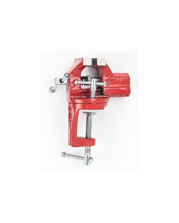 Fundicin de hierro dctil de alta resistencia a la traccin y a impactos. Mordaza por induccin. Tuerca de acero forjado reemplazable. Perfecto para el montaje en un banco de trabajo. Plato giratorio 360. Apertura mx: 50mm