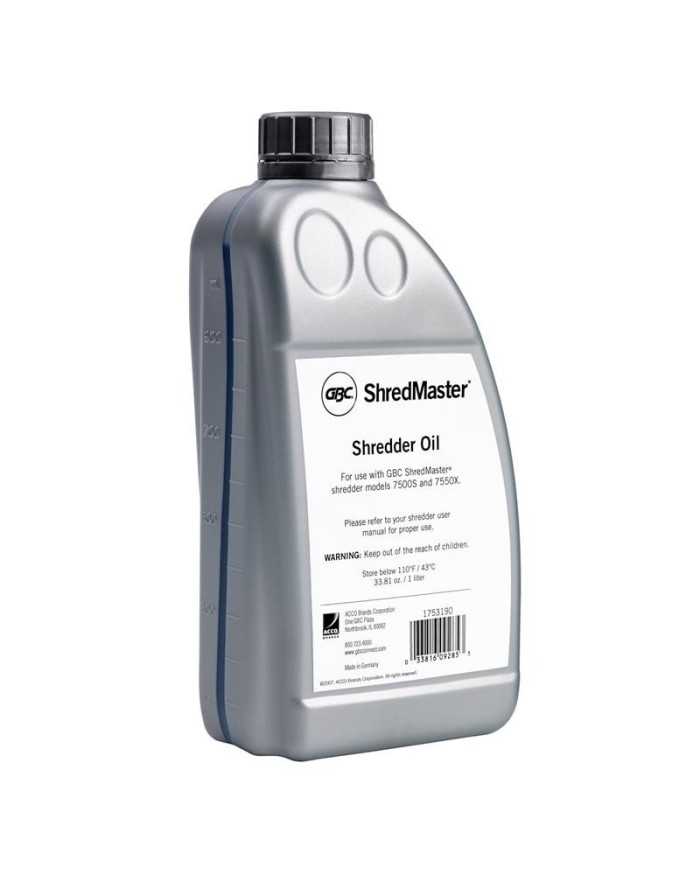 Botella de aceite de 1 litro, lista para usar en las destructoras Rexel de entrada amplia con sistema automático de lubricación. Simplemente instale la botella, y reemplácela cuando esté vacía. Para usar con los modelos de entrada amplia.