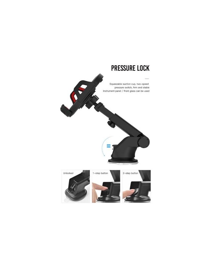 - Se adapta a telfonos de 4" a 6" - Ventosa de agarre fuerte - Admite multitud de posiciones - Botones de bloqueo y desbloqueo del dispositivo