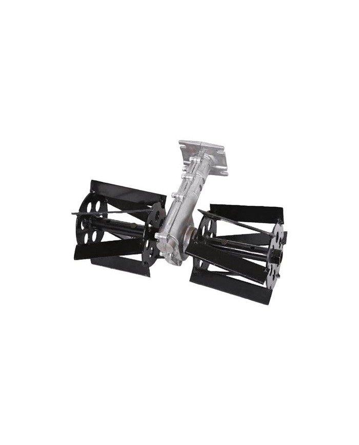 Compatibilidad: Desbrozadoras BLIM con tubo de transmisin de 28 mm de dimetro Funcin: Convierte la desbrozadora en una motoazada ligera para remover y airear la tierra Transmisin: Caja reductora de alta resistencia Ruedas metlicas: Con cuchillas laterales para mejorar la traccin y el labrado Ancho de trabajo: 25 30 cm (aprox.) Material: Acero reforzado y aleacin de aluminio en la caja de engranajes Uso recomendado: Huertos, jardines y preparacin de pequeos terrenos agrcolas