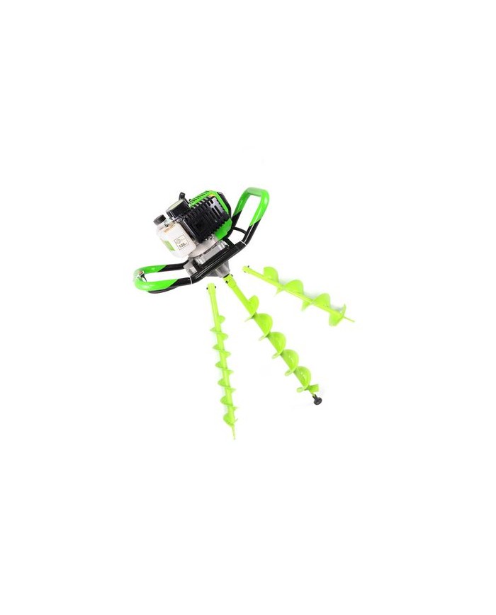 Motor: 2 tiempos. Cilindrada: 51.2 CC. Potencia: 2.3Kw. RPM: 4200 Depsito combustible: 500ml 3 Brocas: dimetros 80mm.,100 mm. y 150mm. x 700mm Ruido: 108db Peso: 17.8 Kg.