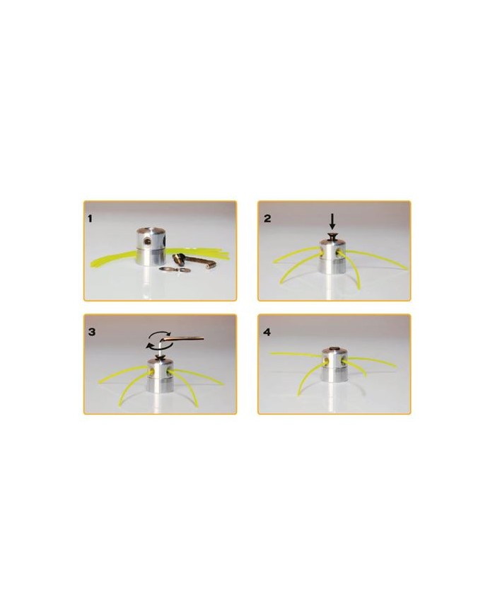 Fabricado en aluminio de alta resistencia. Compatible con la mayora de desbrozadoras de eje de 28 mm. Admite 4 hilos de corte (normalmente de 2,5 4 mm de grosor). Sistema de montaje sencillo, se coloca en lugar del disco o cabezal tradicional. Ideal para corte de hierba alta, maleza y matorrales ligeros. Diseo compacto y duradero, con alta resistencia a impactos.