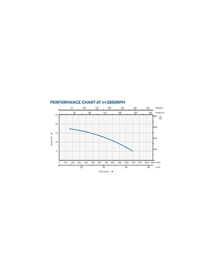 Adecuada para uso en aplicaciones civiles y agrcolas. La alta eficiencia y la capacidad de servicio continuo hacen que estas bombas sean ideales para actividades como el riego por inundacin y aspersin, jardinera, agricultura, extraccin de agua de lagos, ros y pozos, o para numerosas aplicaciones industriales donde se requieren caudales elevados y alturas medias o bajas. La bomba debe instalarse en un ambiente cerrado o, al menos, protegida de las inclemencias del tiempo.Motor: Motor de induccin bipolar (n=2850 r.p.m) Aislamiento: Clase B Proteccin: IP44 Servicio continuo: S1 Protector trmico incorporado Monofsico 220V/50HzCondiciones de trabajo: Temperatura del lquido: hasta 60C Tem
