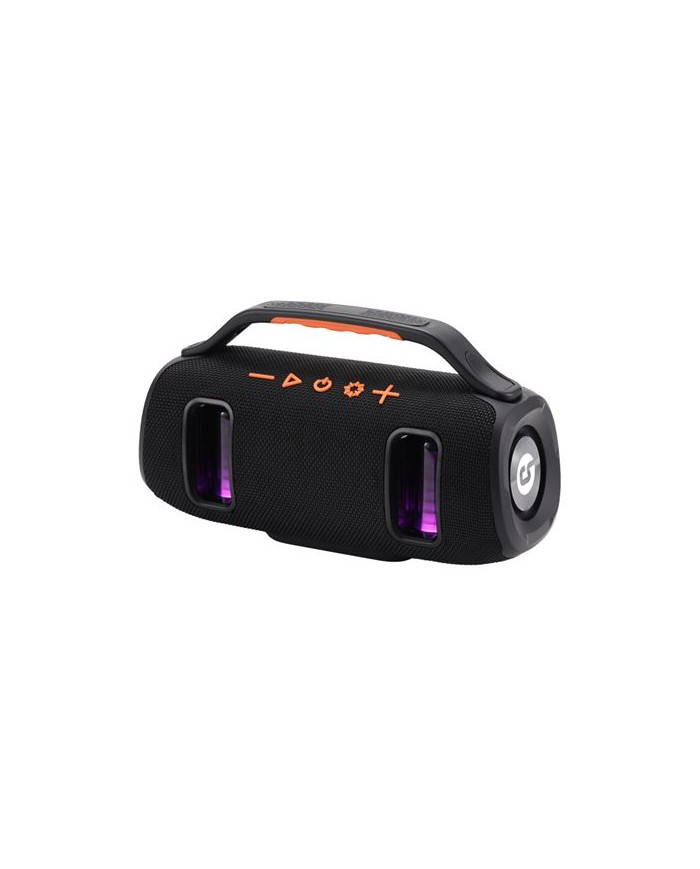 • TWS: Conecta dos altavoces en estéreo sin cables • Iluminación LED RGB lateral (modos controlables) • Función manos libres con micrófono integrado • Reproducción desde tarjeta TF (MicroSD), USB y AUX • Modo FM con búsqueda automática de emisoras • Botones físicos grandes en goma para exteriores • Autoapagado tras 30 min sin actividad • Compatible con formatos MP3 • Especificaciones Técnicas: • Bluetooth: 5.3 • Alcance inalámbrico: 10 m • Relación señal/ruido (SNR): =85 dB • Batería: 3.7V / 1500 mAh • Tiempo de reproducción: Hasta 3 h • Drivers de sonido: Ø78 mm • Potencia de salida: 1 x 15W • Respuesta de frecuencia: 120 Hz – 18 kHz • Tamaño del altavoz: 259 x 100 x 148 mm • Peso: 1024 g • Carga: USB