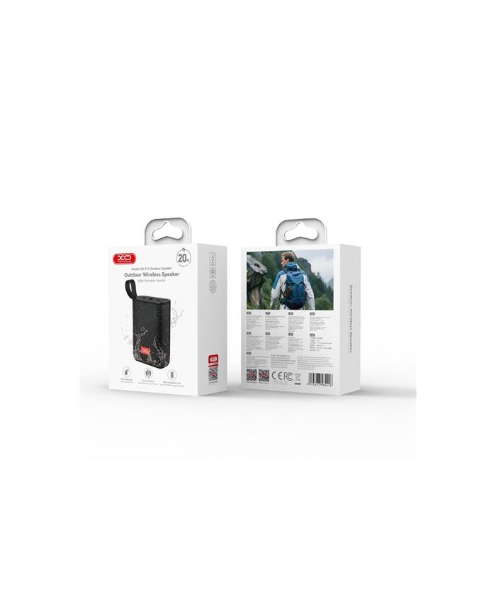 Modelo: XO-F74 Capacidad de batera: 3.7V / 1200mAh / 4.44Wh Entrada: DC5V / 1A Potencia nominal: 5W Tiempo de carga: 2.5h Versin Bluetooth: 5.3 Frecuencia Bluetooth: 2.402GHz 2.480GHz Potencia mxima de transmisin: +2dB Unidad de altavoz: 4O 5W Caractersticas del producto: Bluetooth, tarjeta TF Material del producto: Plstico + silicona Color: Negro Tamao del producto: 115נ85.6נ40mm Peso del producto: 249.8g
