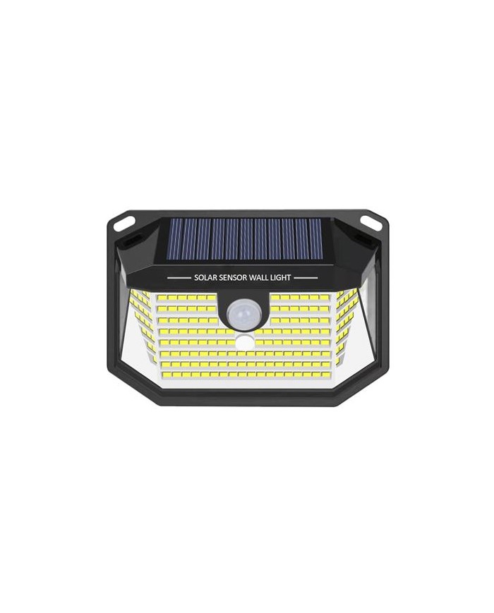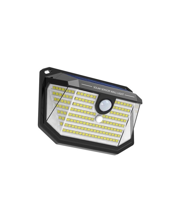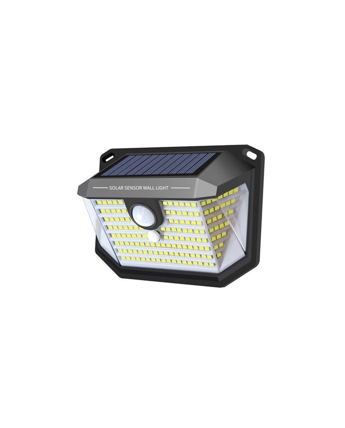 Luz fria, 6500K 150 Lmenes Sensor de movimiento ngulo de deteccin: 120 hasta 6 metros Batera 3.7V, 1200mah Panel Solar 5.5V / 0.33W IP44 ngulo: 120 Distancia de deteccin: 3 - 5 metros 3 modos de trabajo - Siempre encendido cuando no hay luz - Siempre encendido con luz tnue. Cuando detecta movimiento se enciende por completo - Se enciende solo cuando detecta movimiento. Dimensiones: 13.8x9.7x5.8cm