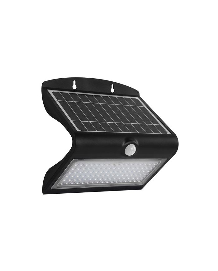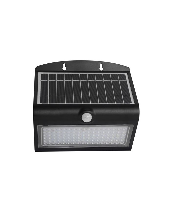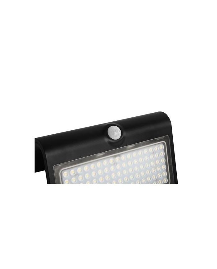 Doble iluminacin - Iluminacin frontal, luz fria 6000K - Iluminacin trasera, luz clida 3000K 850 Lmenes Sensor de movimiento Angulo de deteccin: 120 hasta 6 metros Batera: 3.7V, 4000mAh Panel Solar 4.4W IP65 ngulo: 90 2 modos de trabajo - Siempre encendido ambos lados cuando no hay luz - Encendido al 50% Dimensiones: 23.2x22x12.1cm