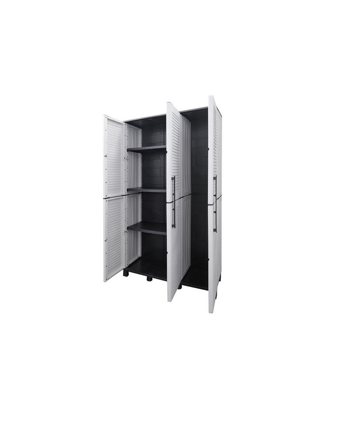 Armario de altura completa y gran capacidad Fabricado en polipropileno reciclable Estantes ajustables para personalizar el almacenamiento Equipado con bisagras de acero y patas regulables Ideal para trasteros, talleres, oficinas, cocinas o zonas de lavado con necesidades de almacenaje grandes Capacidad de carga por estante: 20 kg Medidas: - Ancho: 1020 mm - Profundidad: 370 mm - Altura: 1690 mm