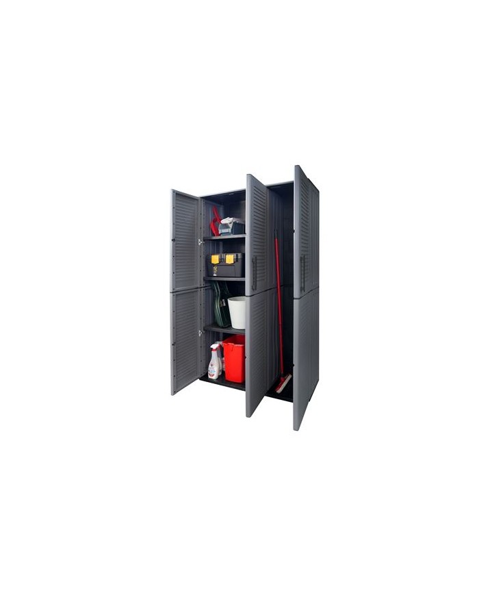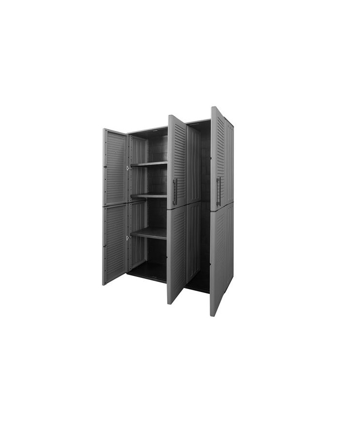 Armario de altura completa fabricado en polipropileno reciclable Incluye estantes ajustables para adaptarse a diferentes tipos de almacenaje Equipado con bisagras de acero, que garantizan durabilidad y resistencia Ideal para almacenar desde herramientas hasta productos de limpieza o textiles Perfecto para uso domstico, profesional o en exteriores protegidos Capacidad de carga por estante: 20 kg Medidas: - Ancho: 1020 mm - Profundidad: 370 mm - Altura: 1630 mm