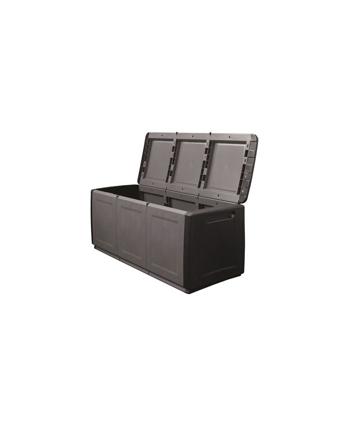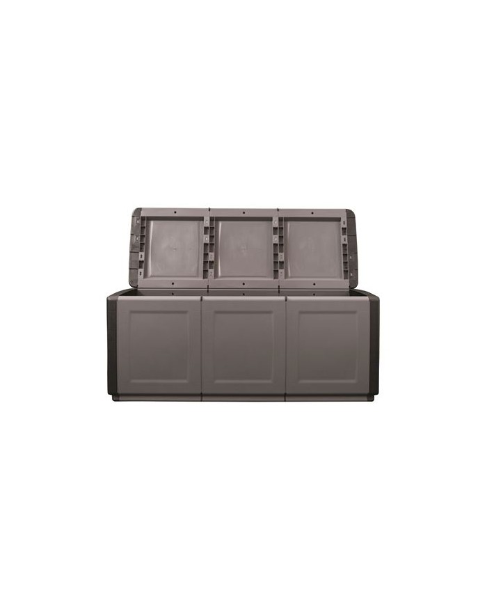 Bal multiusos de plstico fabricado mediante moldeo por inyeccin Dimensiones: 1380 530 570 mm (ancho x fondo x alto) Color: Gris con paneles laterales negros Capacidad: 330 litros Peso neto: 11.50 kg Material antichoque, alta resistencia a temperaturas extremas, aceites y disolventes Lavable, no absorbe olores ni humedad Sistema antiderrame: Diseo anti-drip que evita el estancamiento de agua gracias a pendientes que facilitan el drenaje Gran capacidad: Ideal para uso exterior e interior