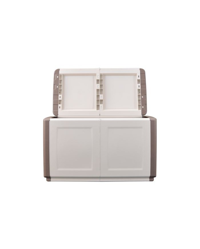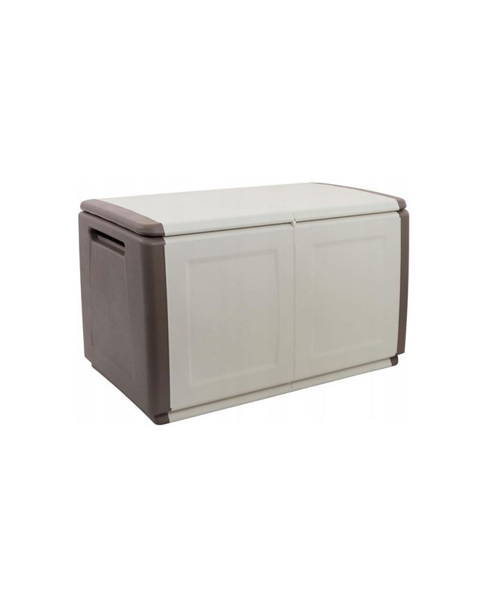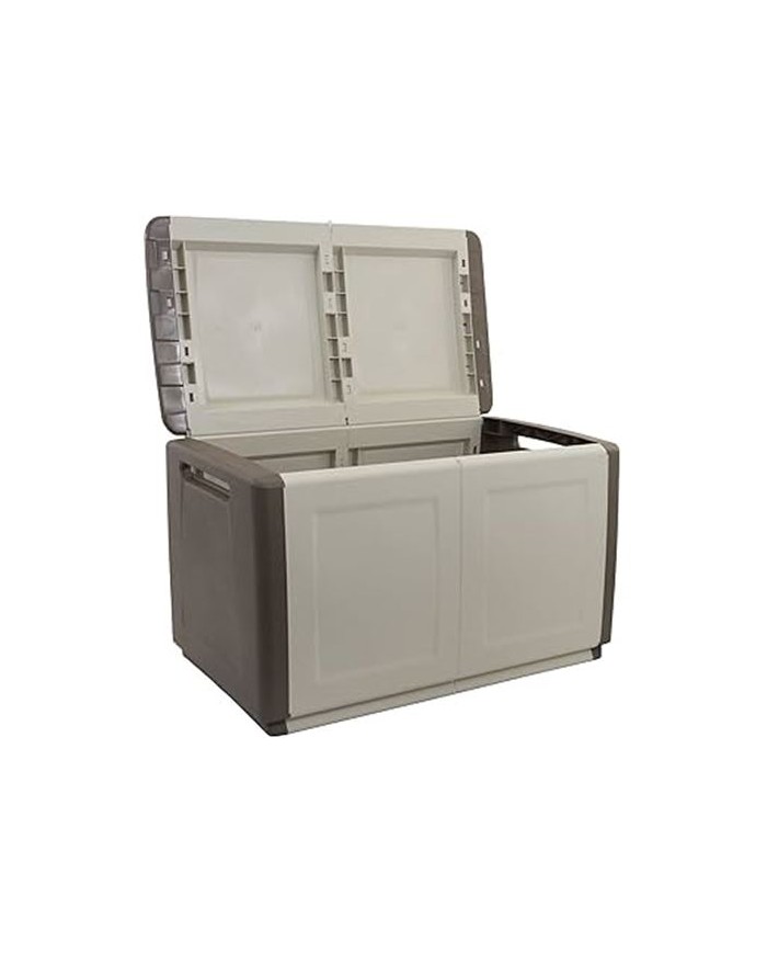 Bal de gran capacidad fabricado en polipropileno, en colores ivory y taupe Tapa abatible resistente, ideal para exteriores cubiertos, trasteros o terrazas Amplio volumen de 230L, ideal para cojines de jardn, mantas, herramientas o juguetes grandes Incluye asas laterales para fcil transporte Diseo robusto, resistente a la humedad y al uso diario Medidas: - Ancho: 960 mm - Profundidad: 530 mm - Altura: 570 mm