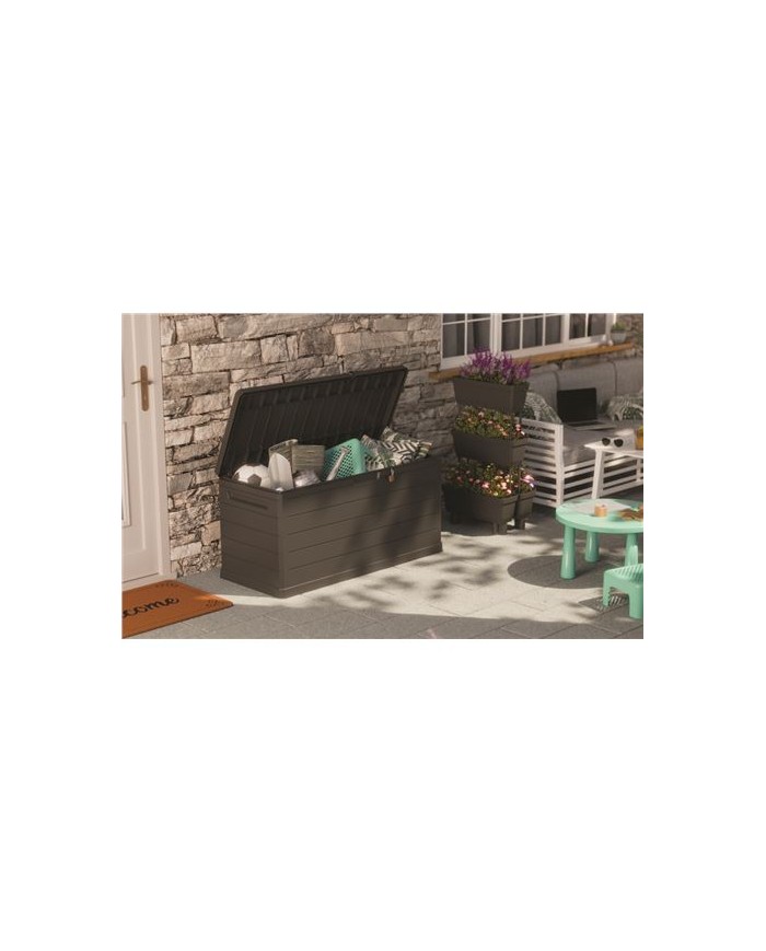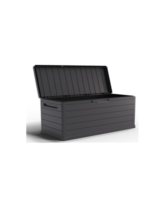 Bal de exterior con capacidad de 350 litros, con cerradura (lockable), en color gris oscuro y resistente al agua. Ideal para jardn, terraza o espacios exteriores. Resistente a la intemperie Posibilidad de cierre con candado (no incluido) Diseo robusto y esttico Montaje rpido sin herramientas Medidas exteriores (mm) - Largo: 1185 mm - Ancho: 520 mm - Alto: 568 mm Uso recomendado: Almacenamiento de cojines, herramientas de jardn, juguetes o accesorios de piscina.