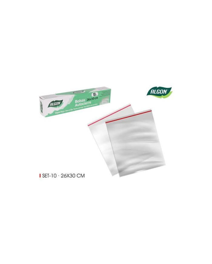 PACK 10 BOLSAS AUTOCIERRE TIPO ZIP 26X30CM ALGON