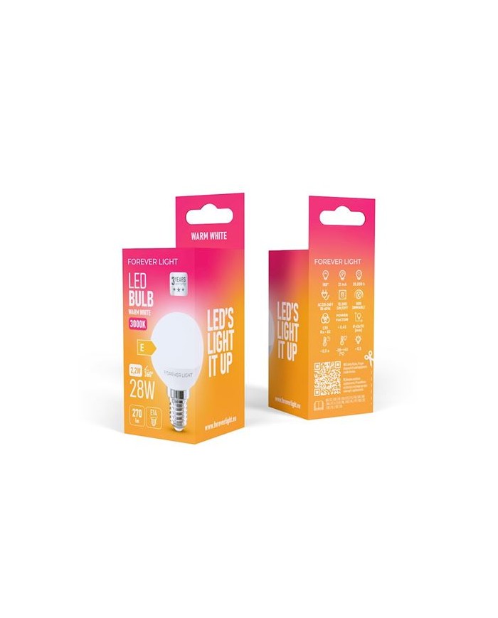BOMBILLA LED G45 | 2.2W | 270LM | E14 | LUZ CALIDA | FOREVER