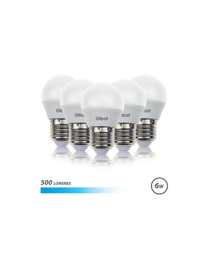 PACK 5 BOMBILLAS LED G45 | 6W | 500LM | E27 | LUZ FRIA | ELBAT