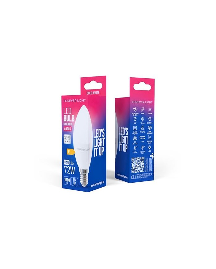 BOMBILLA LED C37 | 8.5W | 1000LM | E14 | LUZ FRIA FOREVER
