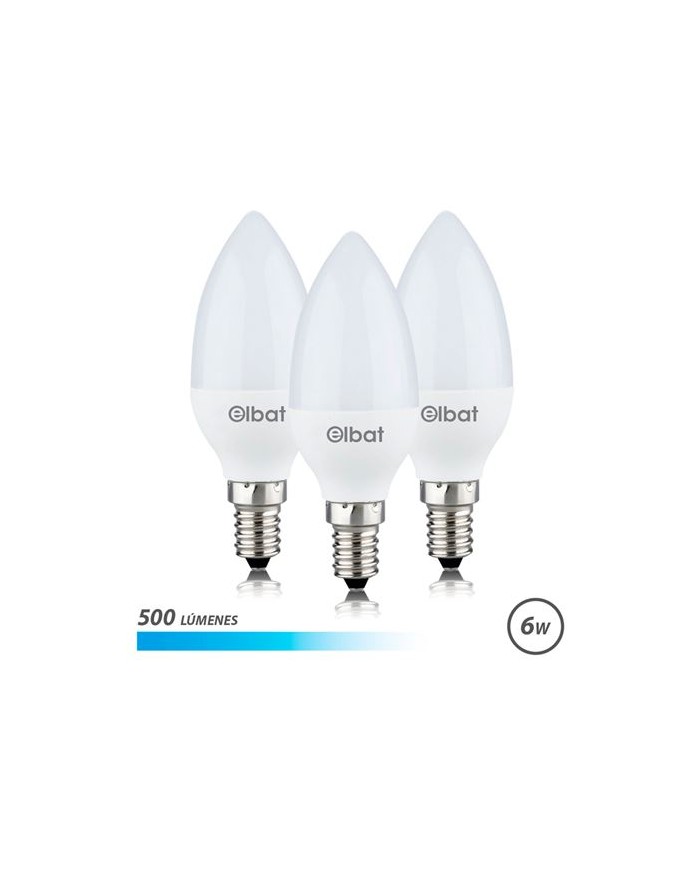 PACK 3 BOMBILLAS LED C37 | 6W | 500LM | E14 | LUZ FRIA | ELBAT