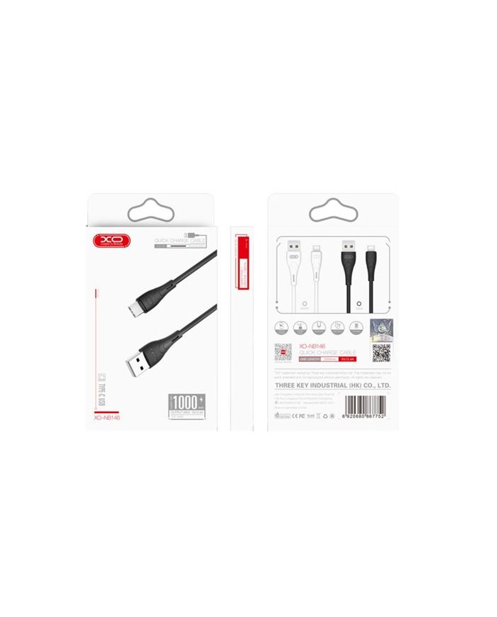 CABLE NB146 CARGA RAPIDA SILICONA USB - MICRO USB | 2.4A | 1 MTR | NEGRO XO