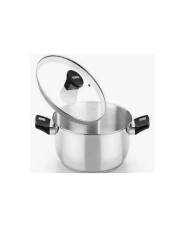 Fabricado en acero inoxidable 18/10. Fondo difusor de aluminio de 4,5mm. Espesor total del fondo de 5,7mm. Asas de baquelita termoestable color negro de nuevo diseo. Tapa de cristal de 4mm de espesor templada. Pomo de baquelita termoestable de diseo actual. Compatible con todas las fuentes de calor, incluida induccin.