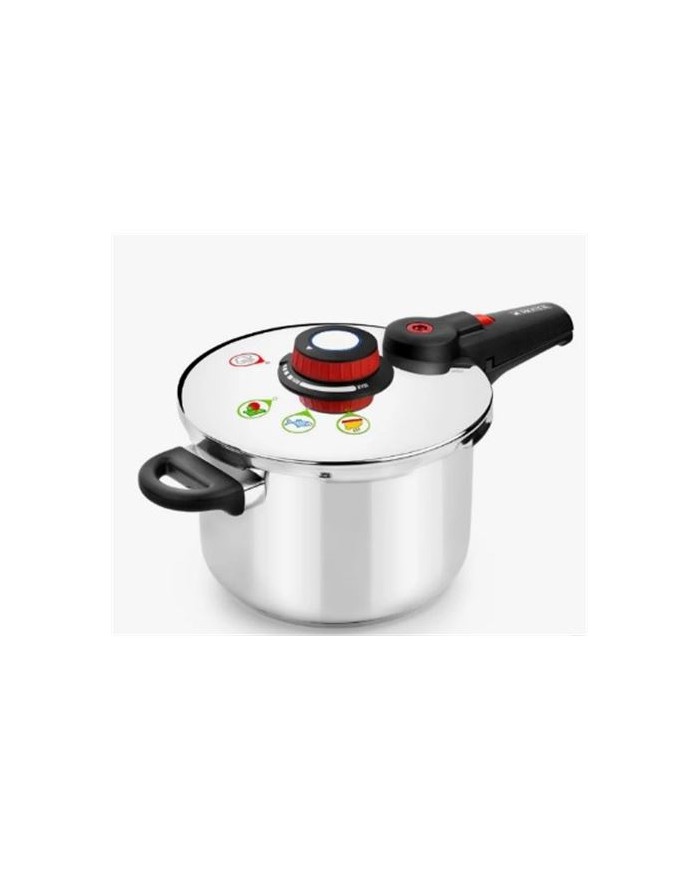 Cocina sana y rica en vitaminas con selector gradual de presin: la olla a presin tiene un regulador que permite una seleccin gradual de la presin (Select&Cook System). Triple fondo difusor para conseguir el mximo aprovechamiento del calor, posee un fondo difusor constituido por Acero Inoxidable Aluminio Acero Inoxidable. Este fondo difusor especial, absorbe y transmite la energa con la mxima homogeneidad. Apta para todo tipo de cocinas, incluidas las de induccin. Mango de tijera que permite una fcil y prctica apertura sin renunciar a un innovador diseo. Fabricada en acero inoxidable 18/10 de la ms alta calidad y baquelita termo-resistente, que garantizan una gran resistencia al desgaste y una larga vida til. Triple sistema de seguri
