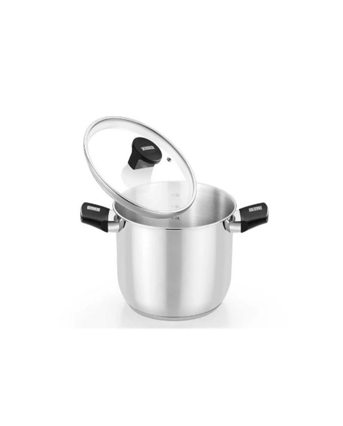 Fabricado en acero inoxidable 18/10. Fondo difusor de aluminio de 4,5mm. Espesor total del fondo de 5,7mm. Asas de baquelita termoestable color negro de nuevo diseo. Tapa de cristal de 4mm de espesor templada. Pomo de baquelita termoestable de diseo actual. Compatible con todas las fuentes de calor, incluida induccin.