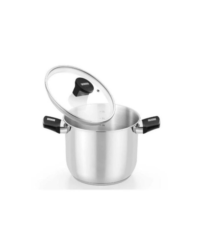 Fabricado en acero inoxidable 18/10. Fondo difusor de aluminio de 4,5mm. Espesor total del fondo de 5,7mm. Asas de baquelita termoestable color negro de nuevo diseo. Tapa de cristal de 4mm de espesor templada. Pomo de baquelita termoestable de diseo actual. Compatible con todas las fuentes de calor, incluida induccin.
