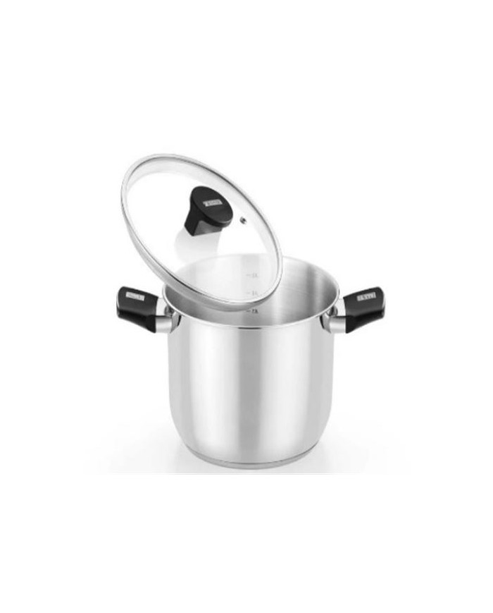Fabricado en acero inoxidable 18/10. Fondo difusor de aluminio de 4,5mm. Espesor total del fondo de 5,7mm. Asas de baquelita termoestable color negro de nuevo diseo. Tapa de cristal de 4mm de espesor templada. Pomo de baquelita termoestable de diseo actual. Compatible con todas las fuentes de calor, incluida induccin.