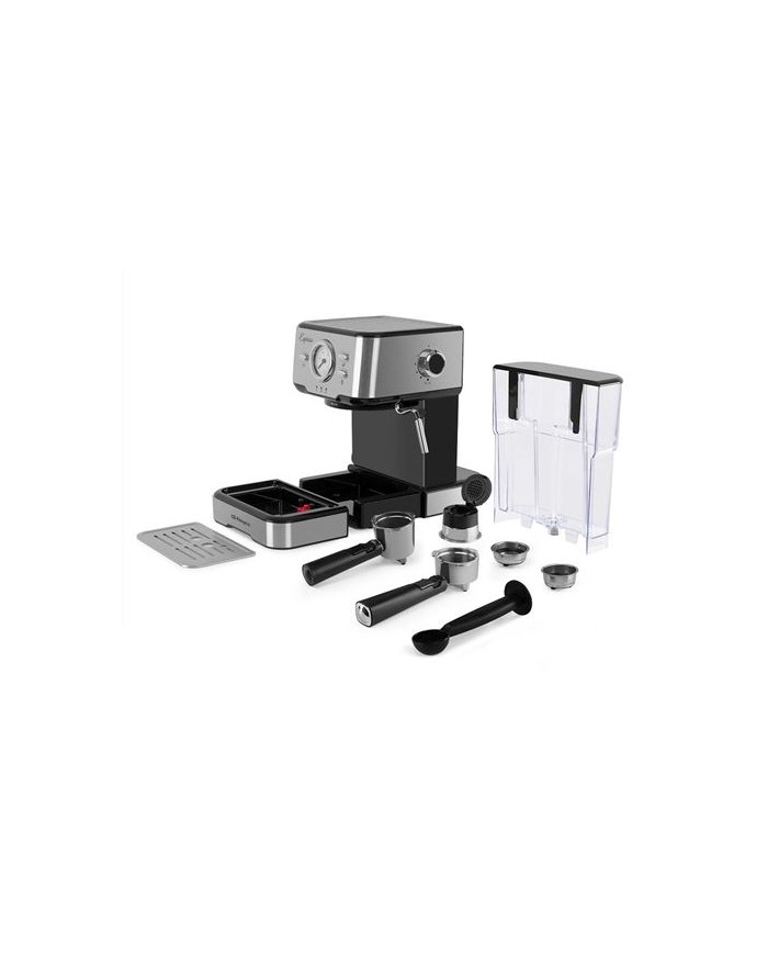 Presin: 20 BAR. Potencia: 1100 W. Control electrnico. Botones con indicadores luminosos LED. Accesorio para cpsulas Nespresso. Panel de control tctil con luces indicadoras de funcionamiento. Modos programados para un caf, dos o por eleccin manual. Termmetro para controlar la temperatura ptima de caf y vapor. Depsito de agua de 1,5 L extrable con apertura superior que permite el llenado sin retirarlo de la cafetera. Vlvula de seguridad que libera la presin automticamente. Sistema de seguridad contra sobrecalentamiento. Permite utilizar tanto caf molido como monodosis. Bandeja superior calienta tazas. Acabados en acero inoxidable. Vaporizador para calentar caf, agua y espumar leche. Bandej