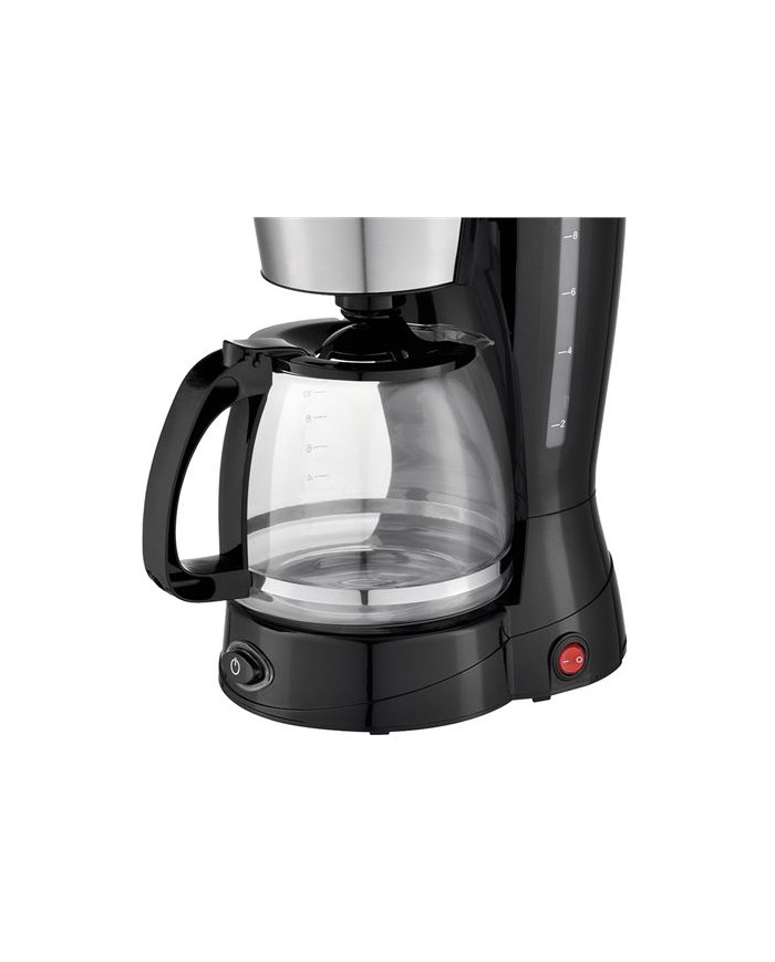 Capacidad: 1.5 litros 12 tazas de caf. Potencia: 800W. Con decoracin inox. Funcin antigoteo. Filtro permanente abatible. Placa caliente antiadherente para mantener el caf caliente. Indicador de nivel de agua. Botn de encendido con indicador luminoso. Proteccin contra sobrecalentamiento. Alimentacin 220-240V ~50/60Hz.
