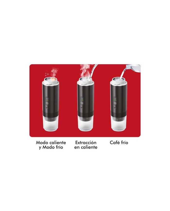 Disfruta del caf perfecto ests donde ests. Esta cafetera porttil 3 en 1 est diseada para acompaarte en tus aventuras, viajes o simplemente para darte un buen caf en la oficina o en casa, sin cables ni complicaciones... Compatibilidad total: - Compatible con caf molido, cpsulas tipo DG (Dolce Gusto) y NS (Nespresso). - Elige tu estilo, sabor y forma favorita de preparar caf. Modo caliente / Modo fro: - Extraccin en caliente: lista en 5-6 minutos, con una presin profesional de 20 bares. - Cold brew: perfecto para caf fro en das calurosos o para los ms modernos. Potencia y autonoma: - Batera recargable de 7500mAh (3 x 2500mAh) para preparar hasta: * 4-5 cafs con 50 ml de agua * 3-4 cafs con 80 ml de agua * M