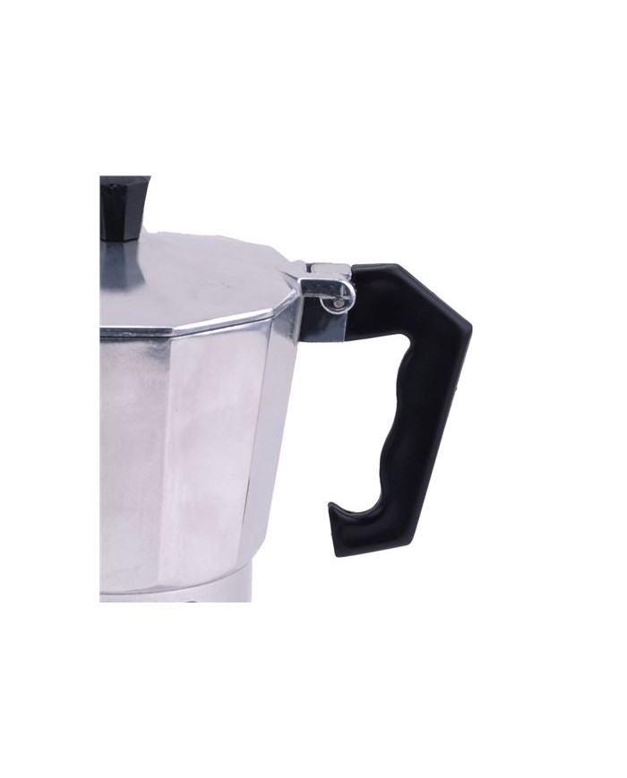 Cafetera de aluminio con recubrimiento antiadherente. Capacidad: 3 tazas. Mango con formato ergonmico. Apta para placas elctricas, vitrocermicas y gas.