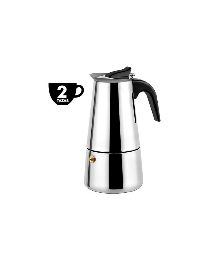 Sabor autntico en menos de 5 minutos Prepara un espresso intenso y lleno de aroma con esta elegante cafetera de acero inoxidable compatible con induccin, gas y vitrocermica. Su diseo compacto y materiales de alta calidad garantizan una experiencia duradera y de sabor puro. Caractersticas principales: - Capacidad para 2 tazas (100 ml) ideal para uso individual o en pareja. - Cuerpo superior de acero inoxidable S/S 304 (0.6 mm) duradero, seguro y de rpida conduccin trmica. - Caldera de acero inoxidable S/S 430 (1.0 mm) con base reforzada para una distribucin uniforme del calor. - Apta para cocinas de induccin, gas y elctricas. - Mango y pomo de nailon trmico siempre fros al tacto, para un uso cmodo y seguro. - Anillo de sil