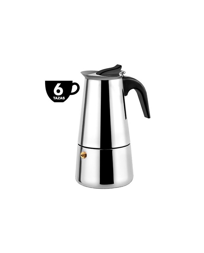 Caf intenso y autntico para compartir Disfruta de un espresso con cuerpo y sabor en menos de 5 minutos con esta cafetera clsica de 6 tazas, compatible con cocinas de induccin, gas y elctricas. Fabricada en acero inoxidable de alta calidad, es ideal para quienes aprecian el caf tradicional con la comodidad de un diseo moderno y resistente.Caractersticas destacadas: - Capacidad para 6 tazas (300 ml) ideal para familias, invitados o amantes del caf que no se conforman con una sola taza. - Acero inoxidable S/S 304 y S/S 430 cuerpo superior de 0.6 mm y caldera de 1.0 mm, garantizando durabilidad y calentamiento rpido. - Rosca de acero reforzado (S/S 430, 0.8 mm) asegura un cierre firme y seguro. - Apta para cocinas de induccin, vit
