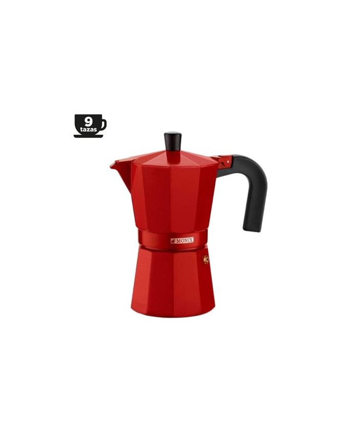 CAFETERA ITALIANA ALUMINIO 9 TAZAS VITRO ROJA MONIX