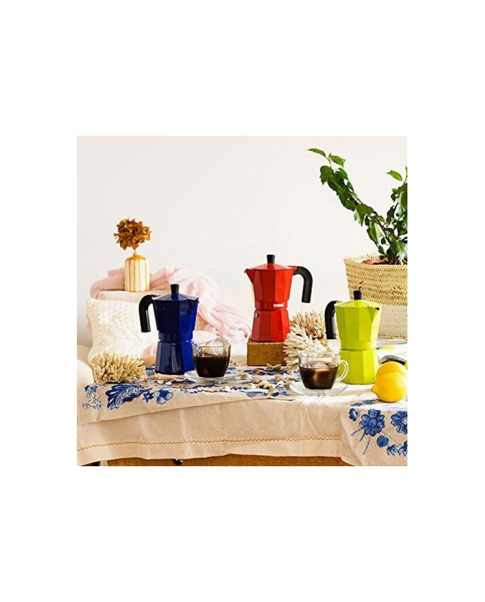 Cafetera Express de aluminio con recubrimiento antiadherente. Mango fabricado en baquelita termo-resistente con formato ergonmico. Acabado exterior mate Diseo interior del caldern sin cantos para una limpieza ms cmoda.