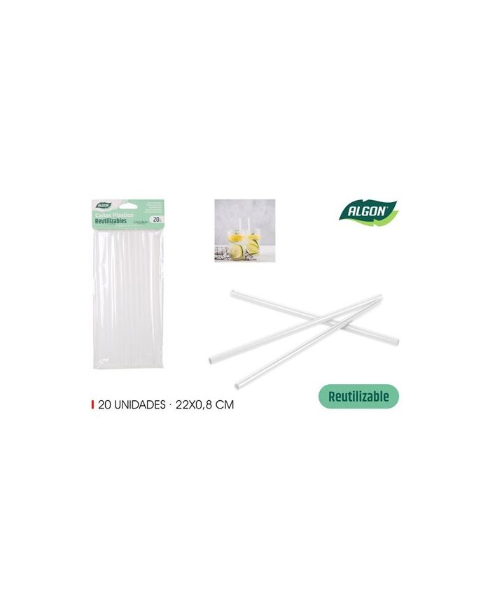 PACK 20 CAÑITAS PLASTICO REUTILIZABLE TRANSPARENTE ALGO