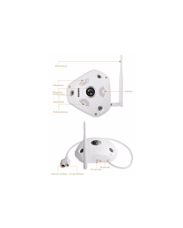 Cámara tipo Panormica 360 INTERIOR da-noche Resolucin 5MP 2560x1920@20fps Protocolo ONVIF 3 leds infrarrojos, alcance 20 Metros Soporta LAN, WIFI y modo AP Soporta almacenamiento de tarjeta microSD hasta 128GB Micrfono y altavoz incorporado Soporta P2P. Botn RESET incorporado Acceso a travs del navegador, software de PC o aplicacin mvil Dimensiones / Peso: 165x154x40mm / 0.25Kg Incluye transformador SOFTWARE AL COMPLETO: http://www.ipcam.xin