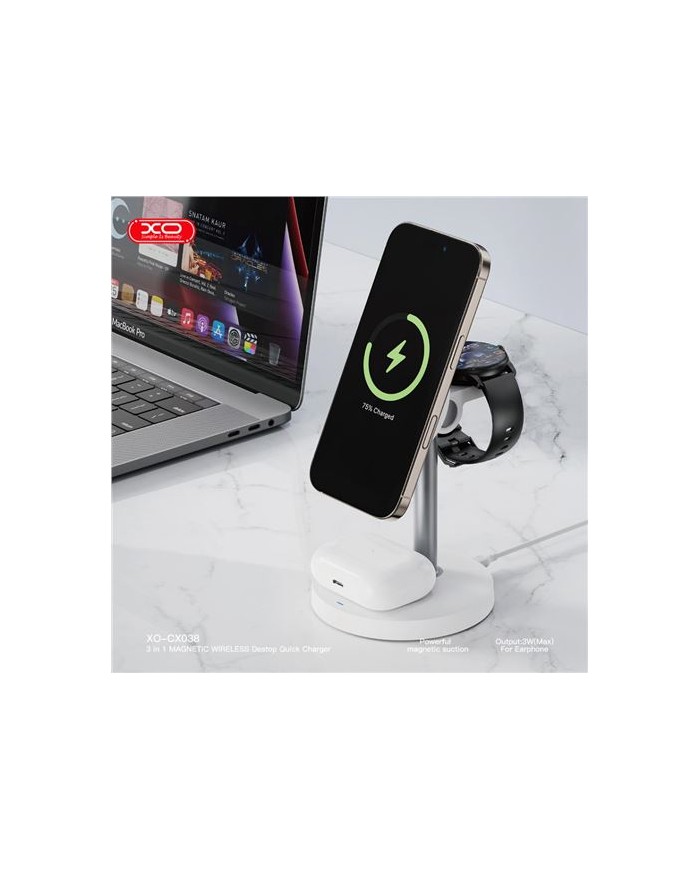 CARGADOR INALAMBRICO MAGNETICO 3 EN 1 CX038 BLANCO XO
