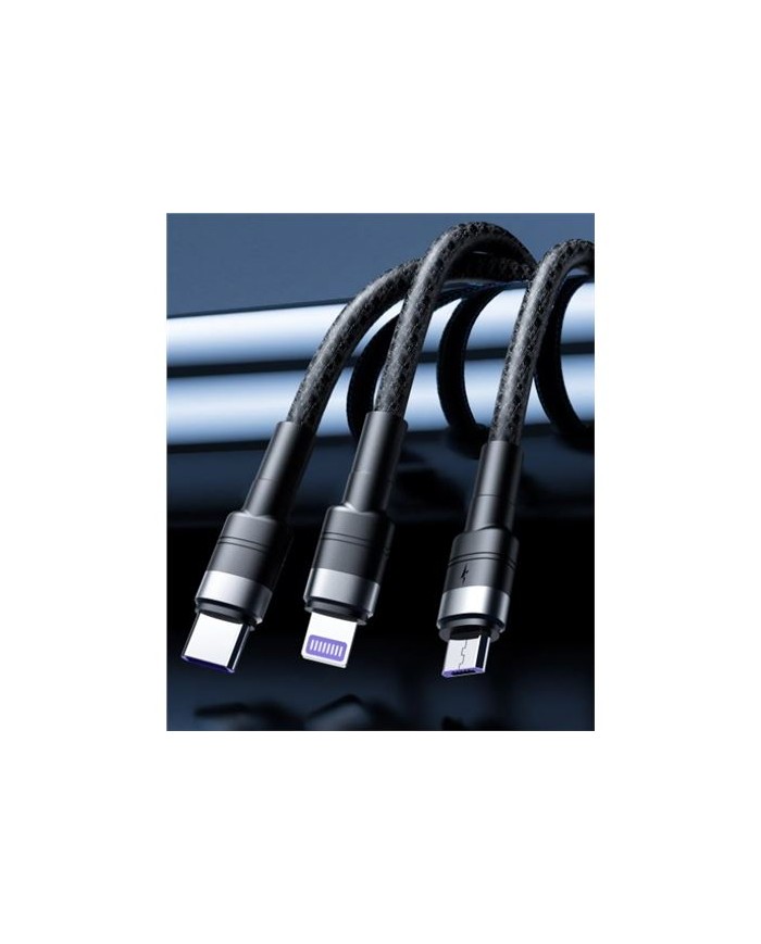 Cable 3 en 1. Micro USB + Tipo C + Lightning 40W Material de alta calidad, anti rotura y terminales extra duros. Carga rpida hasta 480Mb/s Conexin microUSB 5V/2.4A Conexin tipoC 10V/4A Conexin lightning 5V/2.4A Longitud: 1.2 metros