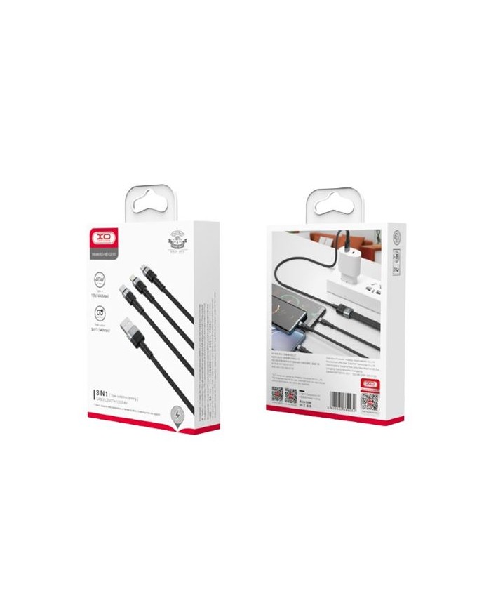 CABLE NBQ191 CARGA RAPIDA 40W 3 EN 1 | MICRO + TIPO C + LIGHTNING A USB XO