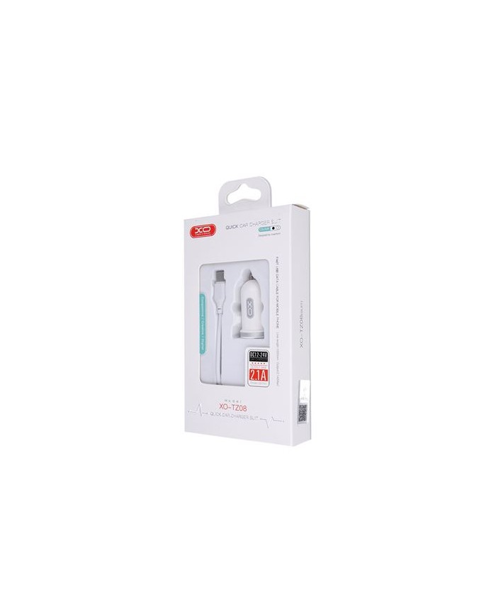 PACK CARGADOR MECHERO TZ08 2.1A + CABLE TIPO MICRO USB BLANCO XO