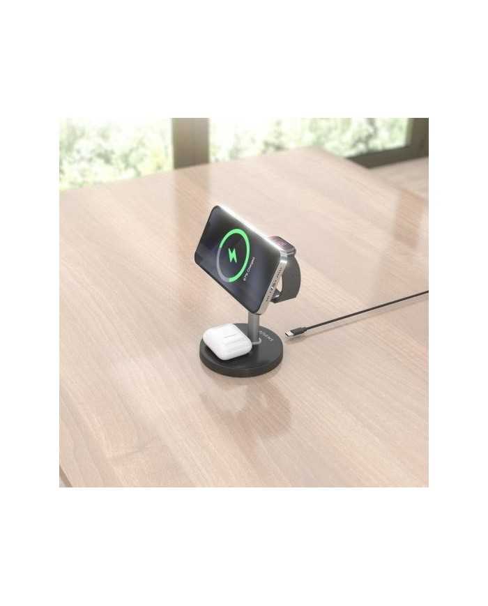 Aumenta tu productividad y mantén todos tus dispositivos cargados con eficiencia y total seguridad. Este cargador inalámbrico multifunción ofrece hasta 15W de potencia para smartphones, asegurando recargas rápidas y estables compatibles con el protocolo Qi2 y fundas magnéticas. Gracias a su soporte inclinado, puedes usar tu teléfono en modo manos libres mientras carga, ideal para videollamadas, gestión de notificaciones o consumo de contenido. Los tres puntos de carga permiten abastecer móvil, Apple Watch y auriculares con estuche de carga de forma simultánea, eliminando el desorden de cables y maximizando tu espacio en el escritorio profesional. Posee múltiples sistemas de protección avanzados (sobretensión, sobrecorriente y sobrecalentamiento) que garantizan seguridad para tus equipos en entornos intensivos o de trabajo crítico.