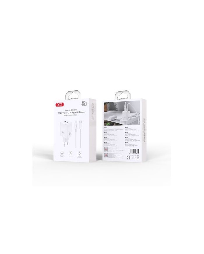 CARGADOR USB+USB-C 45W CON CABLE TIPO-C BLANCO XO