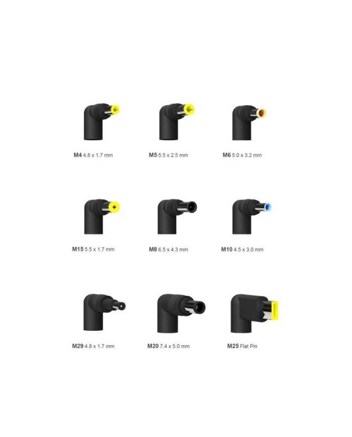 - 9 Conectores DC intercambiables para asegurar una máxima compatibilidad de portátiles.